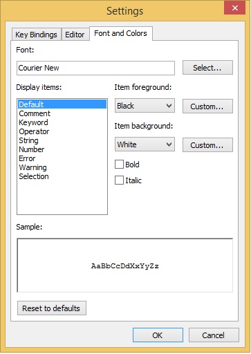 All the options related to fonts and colors of the code editor are available here.