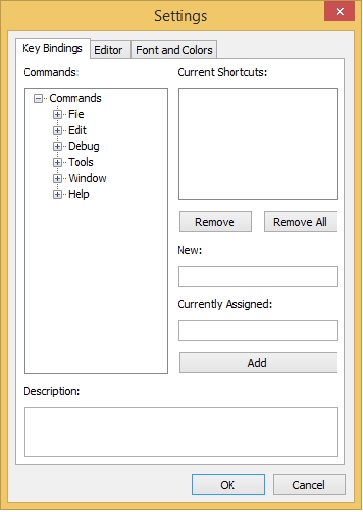 The submenu items short cut can be assigned here by selecting the specific sub menu, the current short cut selection would be displayed in the current Shortcuts: text edit box. It can be edited here.