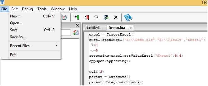 would be written in code editor using Lua script. The script would be executed to automate the target application.